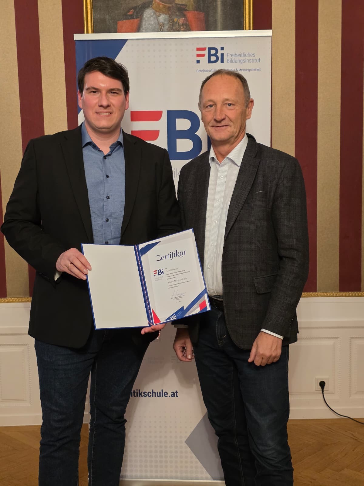 Am vergangenen Wochenende fand das letzte Modul der Metapolitik-Akademie statt. Im Mittelpunkt standen die eindrucksvollen Präsentationen der Teilnehmer, die ihre Abschlussprojekte vorstellten. Den feierlichen Abschluss bildete die Übergabe der Zertifikate durch den Präsidenten des Freiheitlichen Bildungsinstituts MMMag. Dr. Axel Kassegger. Herzliche Gratulation an alle Teilnehmer!