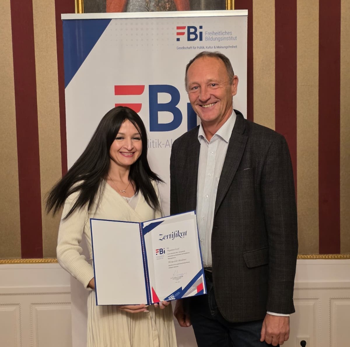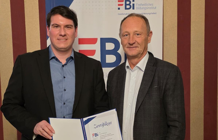 Am vergangenen Wochenende fand das letzte Modul der Metapolitik-Akademie statt. Im Mittelpunkt standen die eindrucksvollen Präsentationen der Teilnehmer, die ihre Abschlussprojekte vorstellten. Den feierlichen Abschluss bildete die Übergabe der Zertifikate durch den Präsidenten des Freiheitlichen Bildungsinstituts MMMag. Dr. Axel Kassegger. Herzliche Gratulation an alle Teilnehmer!